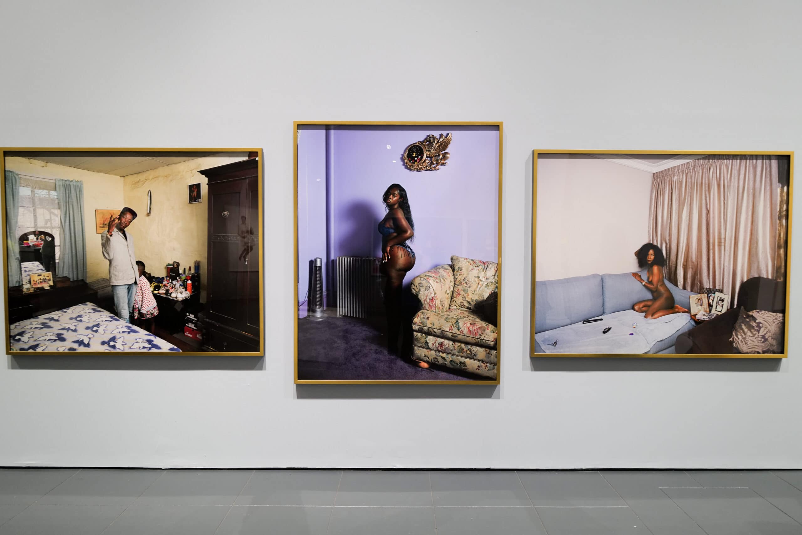 The space features works of all sizes, but there is a focus on larger-than-life pieces, which lends to the name of the exhibition Giants. Arthur Jafa’s “Big Wheel I,” 2018, dominates the centre room in the Great Hall, while the colossal photograph of Keys and Beatz in formal wear, posing with a BMX bike instantly catches the eye. One wall is adorned with black-and-white photographs by Gordon Parks, showcasing iconic images of Malcolm X, Muhammad Ali, and Langston Hughes, as well as poignant portraits of lesser-known individuals. Opposite this, Jamel Shabazz’s candid colour photographs capture stylish Brooklyn residents and early hip-hop pioneers. Another wall features Deana Lawson’s large, staged photographs of domestic interiors, which remain as striking and powerful as ever.