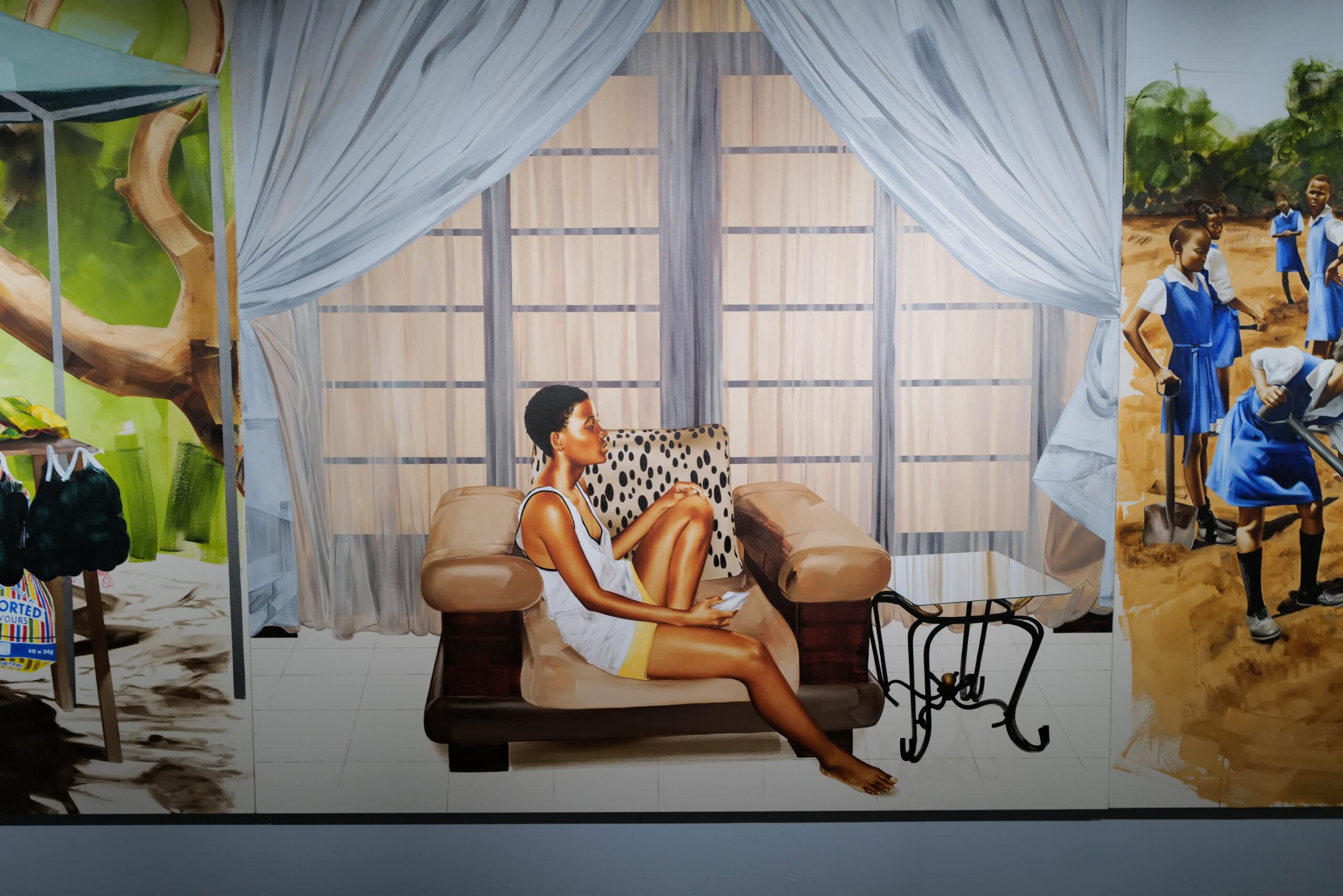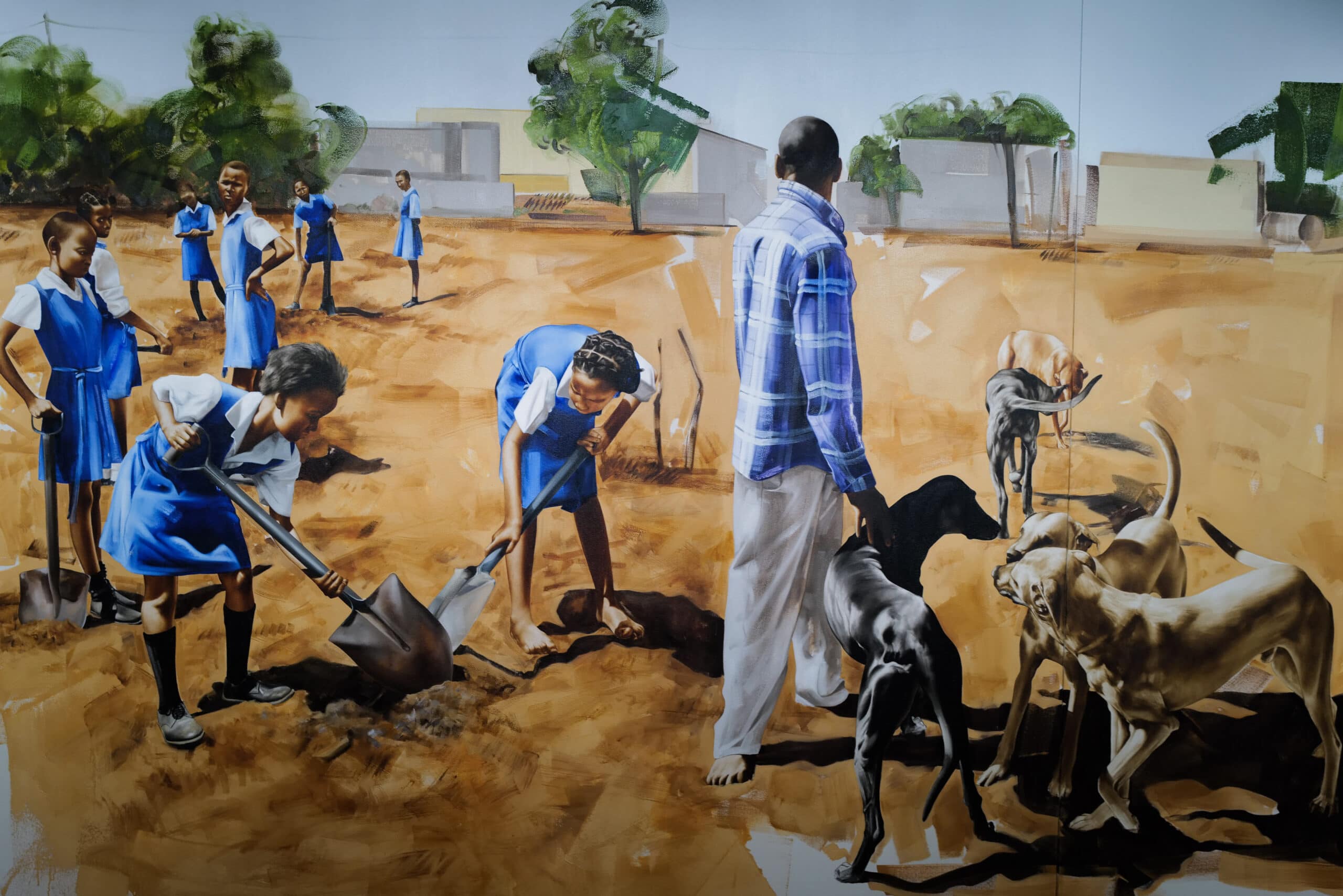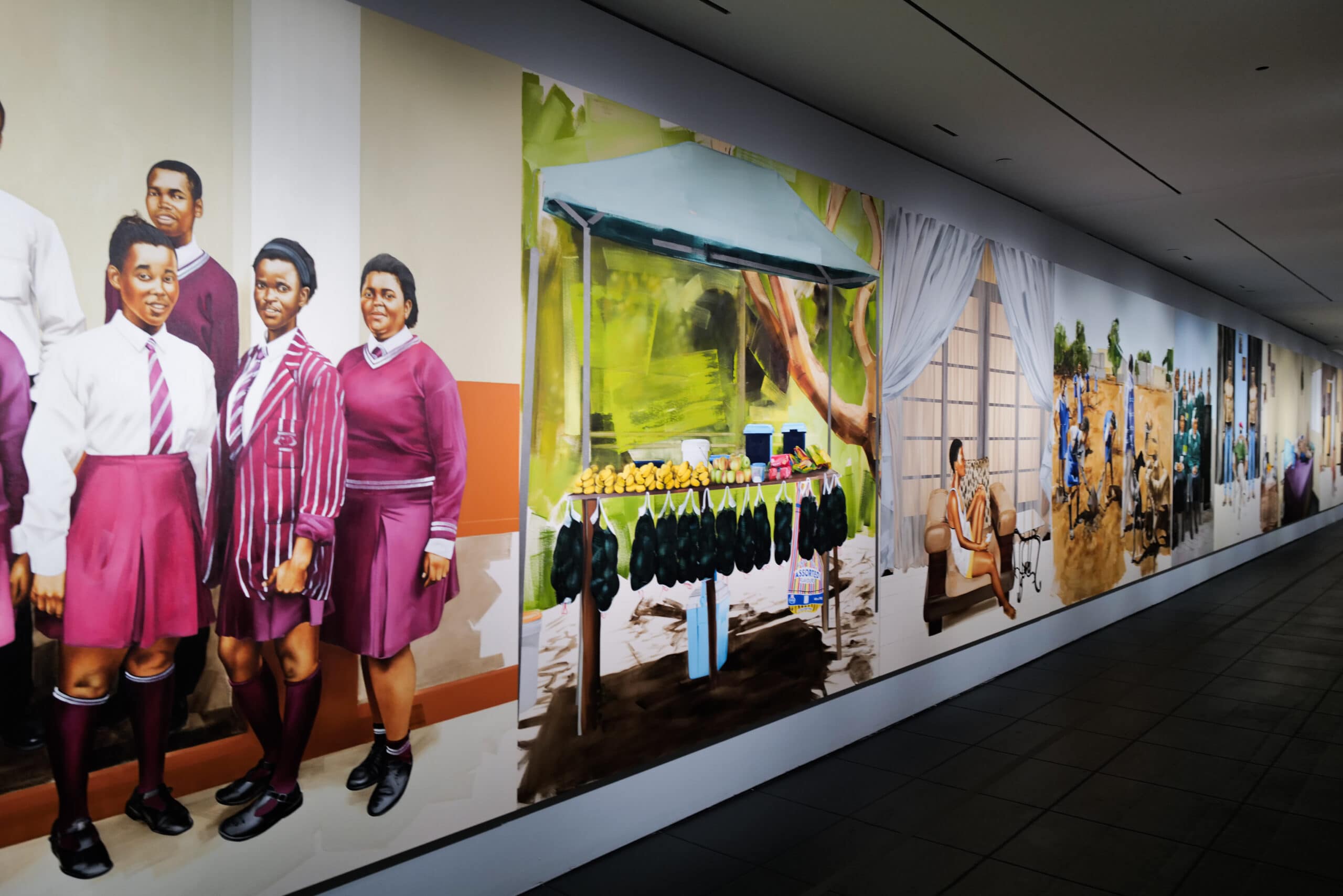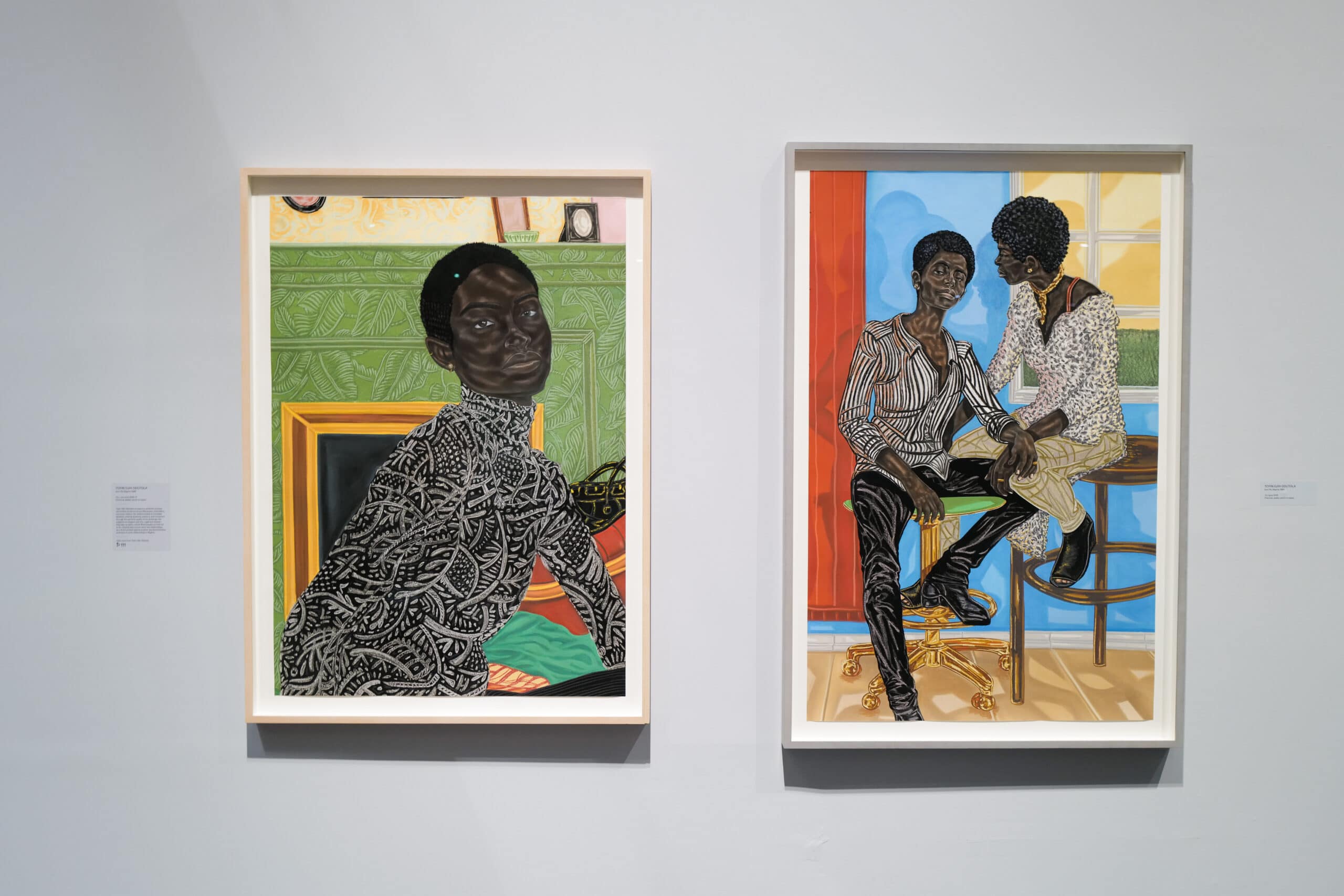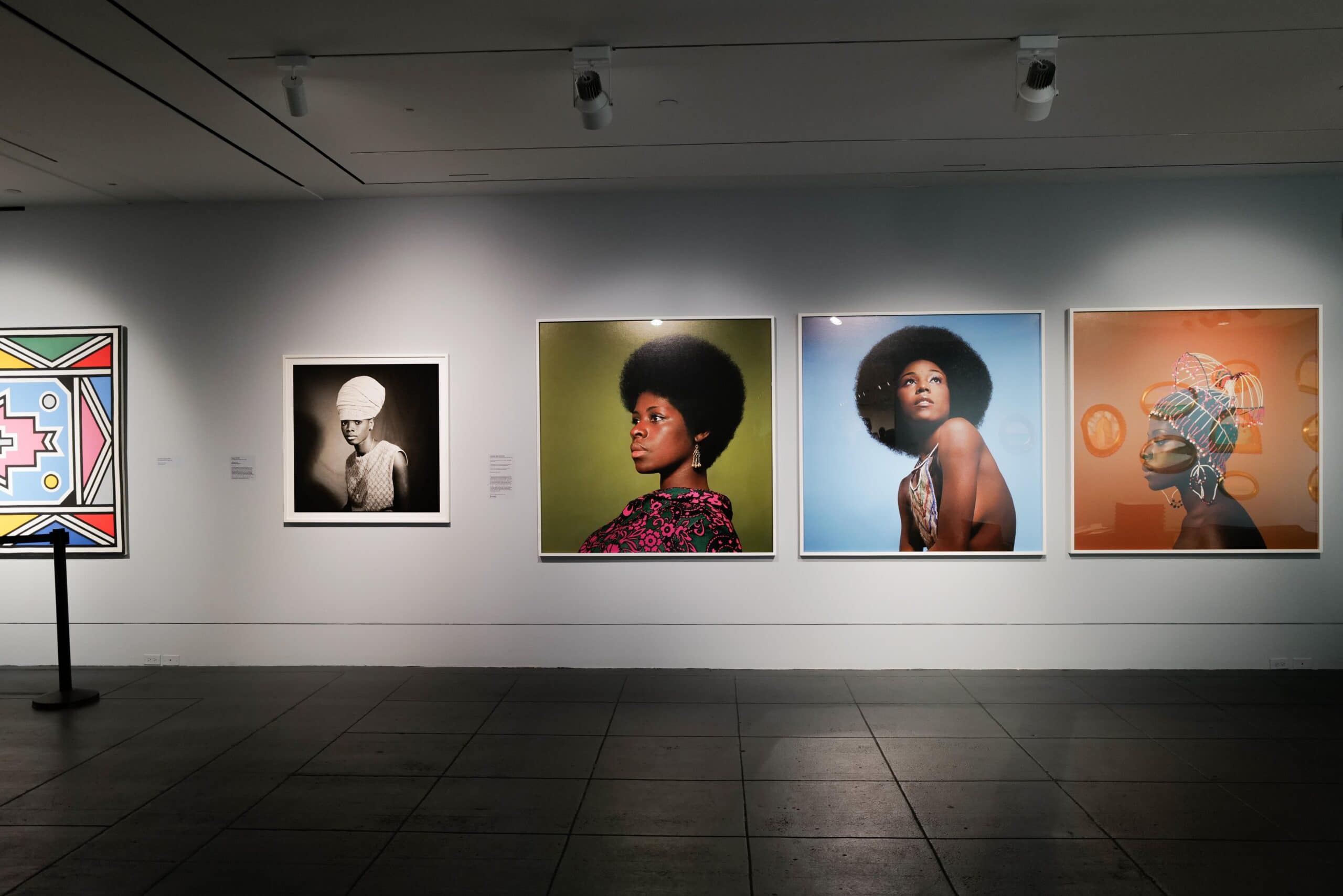 This collection not only highlights the diversity and richness of Black artistic expression but also focuses on the significance of representation and inclusivity in the art world, especially within an institution that has historically prioritised Western art. The immense collection of the musical superstars, importantly, takes up space, institutional space, that’s historically been reserved for white representation. The Deans’ raison d’être for this exhibition is to combine the works of renowned African artists and artists from the diaspora with upcoming Black artists to create a story that has historical value, while also looking towards the future of African art. There are around 100 artworks by 37 artists in the large exhibition space, which took over 2 years to bring to life, under the expert curation of Kimberli Gant. Giants brings artists whose legacies paved the way for today to the forefront: Jean-Michel Basquiat, Ernie Barnes, and Jamel Shabazz amongst others. Upon arrival, there is also a trio of canvases by Esther Mahlangu with her signature geometric works of her Ndebele heritage.