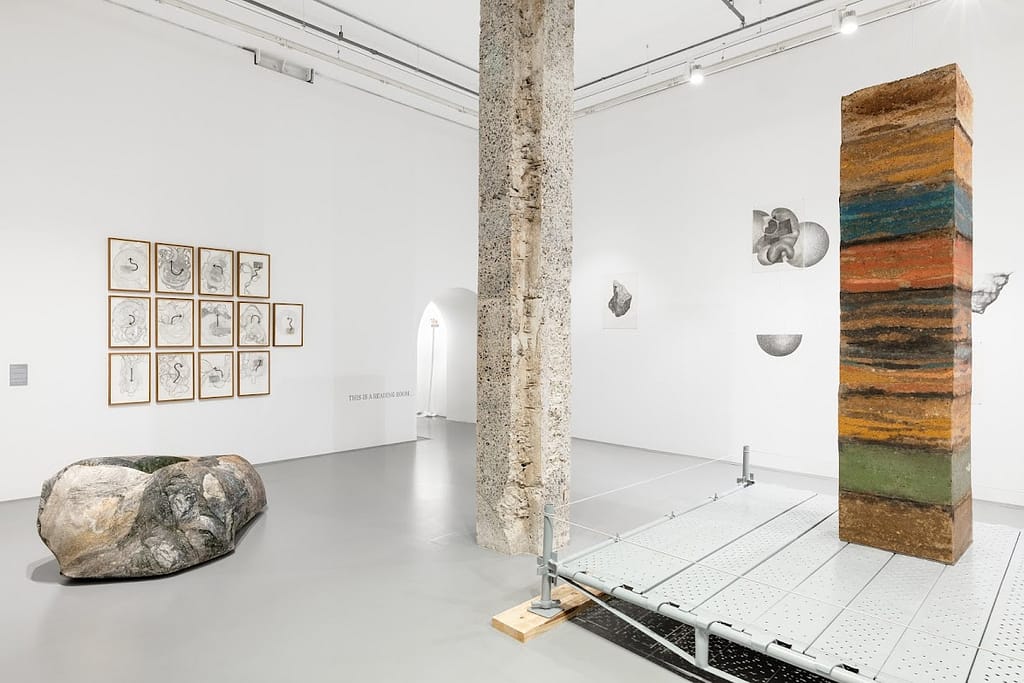 Dennis, on the other hand, fractures the very concept of inherited systems. UNDERSTUDIES is less about looking back and more about unsettling what we think we know in the present. His work is a study in disruptions — of geology, time, and authority — using installations, diagrams, and conceptual devices to unearth hidden structures of power. Featured in the exhibition are artworks that re-perform propositions about geology (land and landlessness) and cosmology (local knowledge and the multiverse) that have come to inform the political arc of the artist’s practice.