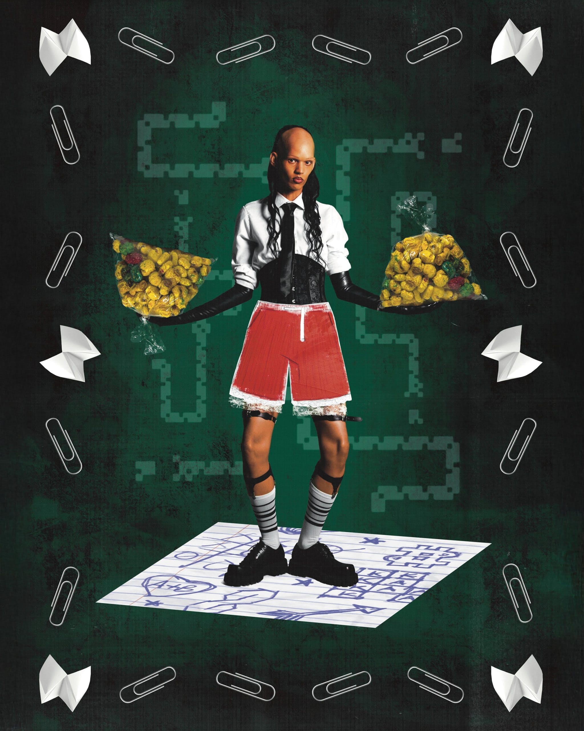 Vamos Brincar (Portuguese for ‘Let’s play’) marks a clear departure in the work of Yuri Pailman. Shaped in Johannesburg, long a site of observation, refuge, and becoming, the project reflects a city that has held space for queer creativity to unfold slowly, intuitively, and on its own terms. Fashion emerges not as spectacle, but as a language of self-understanding and survival.